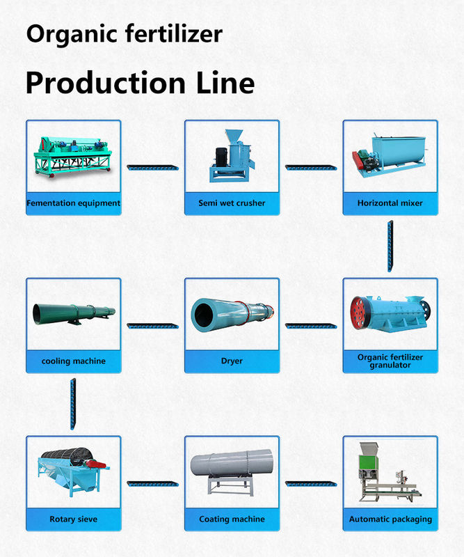 De productielijn voor organische meststoffen is ontworpen om organische natte grondstoffen te granuleren. Het product heeft een capaciteit van 1-20T/u en kan worden gebruikt met een verscheidenheid aan grondstoffen zoals compostmest, landbouwafval, stadsvuil, enz. Het productieproces van het product omvat vermalen, mengen, granuleren, zeven en verpakken.